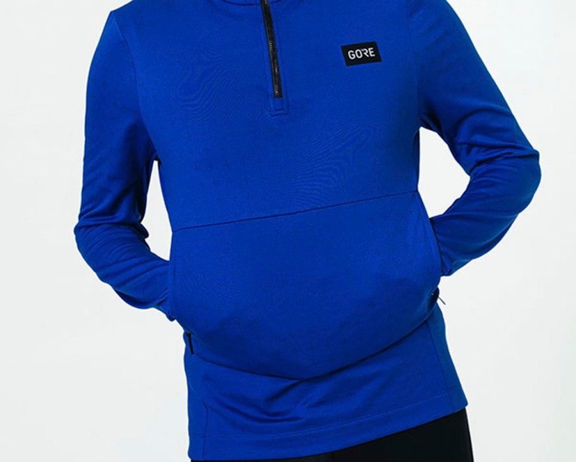 Highly breathable ¼-zip thermal mid-layer with zippered pockets that will keep you warm before, during and after your workout.