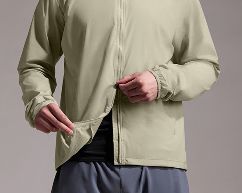 A revolution in comfort. Remarkably soft, supple and highly breathable windbreaker for runners with specially woven anti wet-cling interior for groundbreaking next-to-skin comfort
