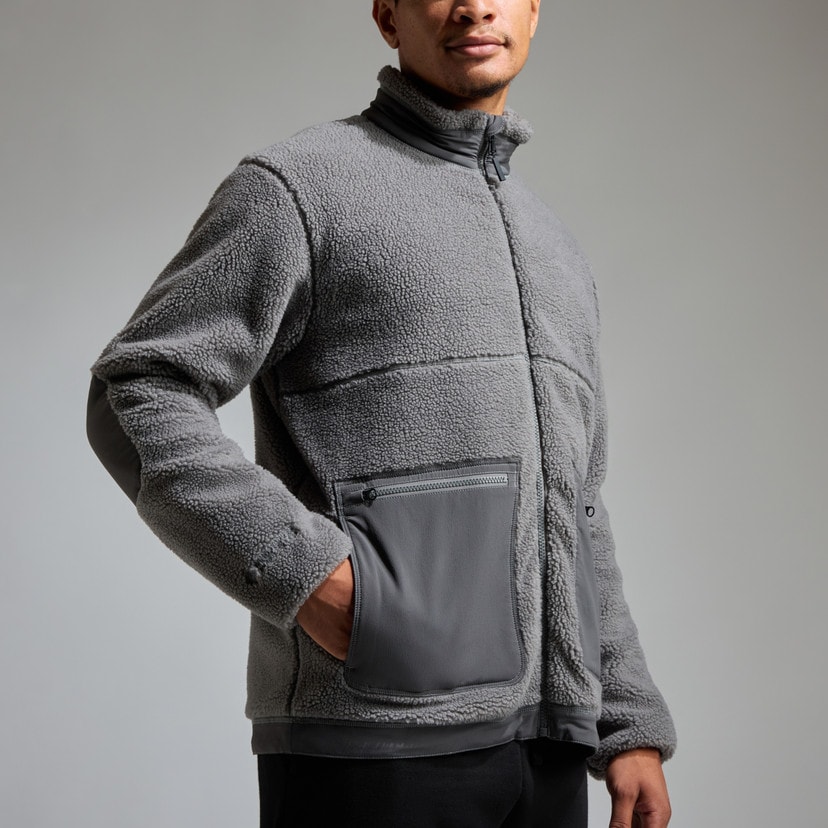 High-loft Berber fleece fabric and a comfortable, relaxed fit allow for easy layering and mobility.