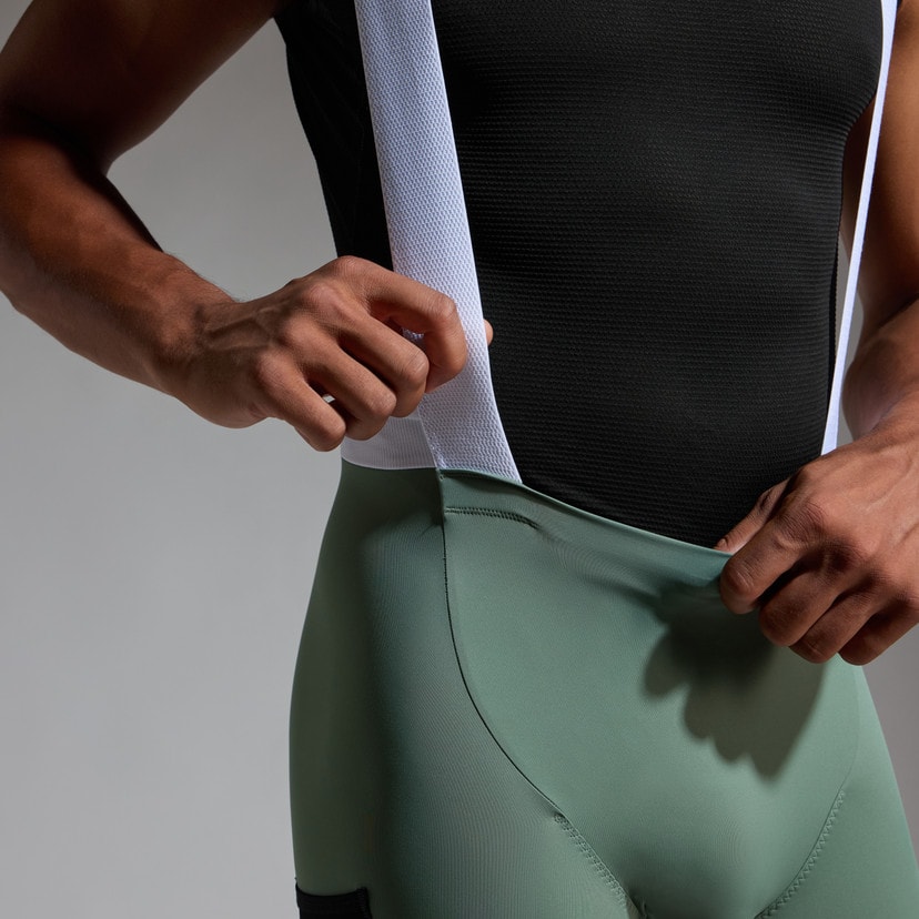 - Wide, open-weave bib straps distribute tension evenly on the shoulders
