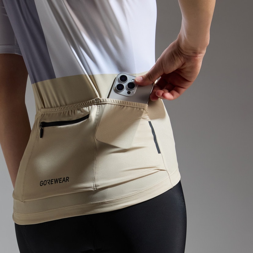 The breathable, moisture-wicking performance of a technical cycling jersey, but with a more casual, easy-wearing fit that’s slim yet not body-hugging.