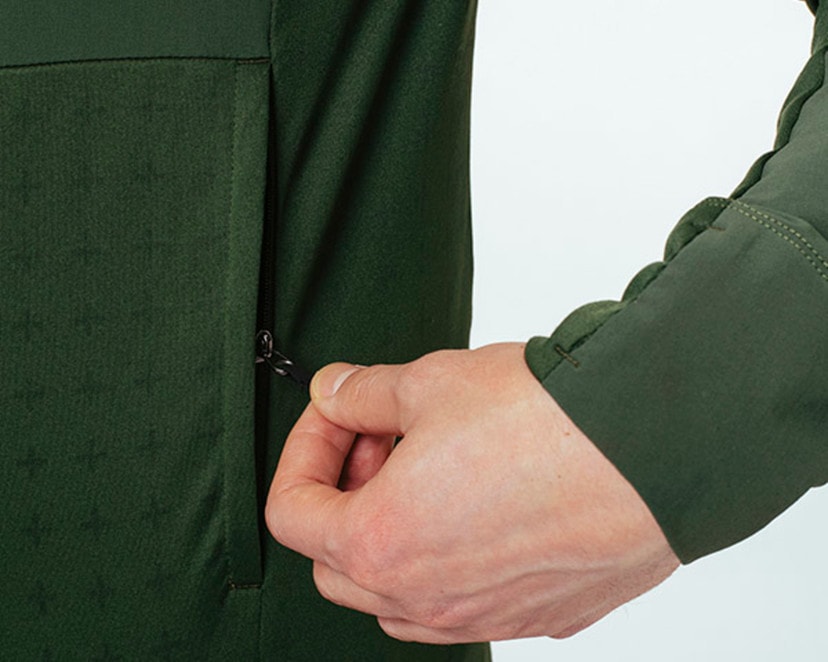 The perfect mid-layer for a trail adventure in unpredictable conditions, reinforced in demanding areas with water-repellent, wind- and abrasion-resistant material.